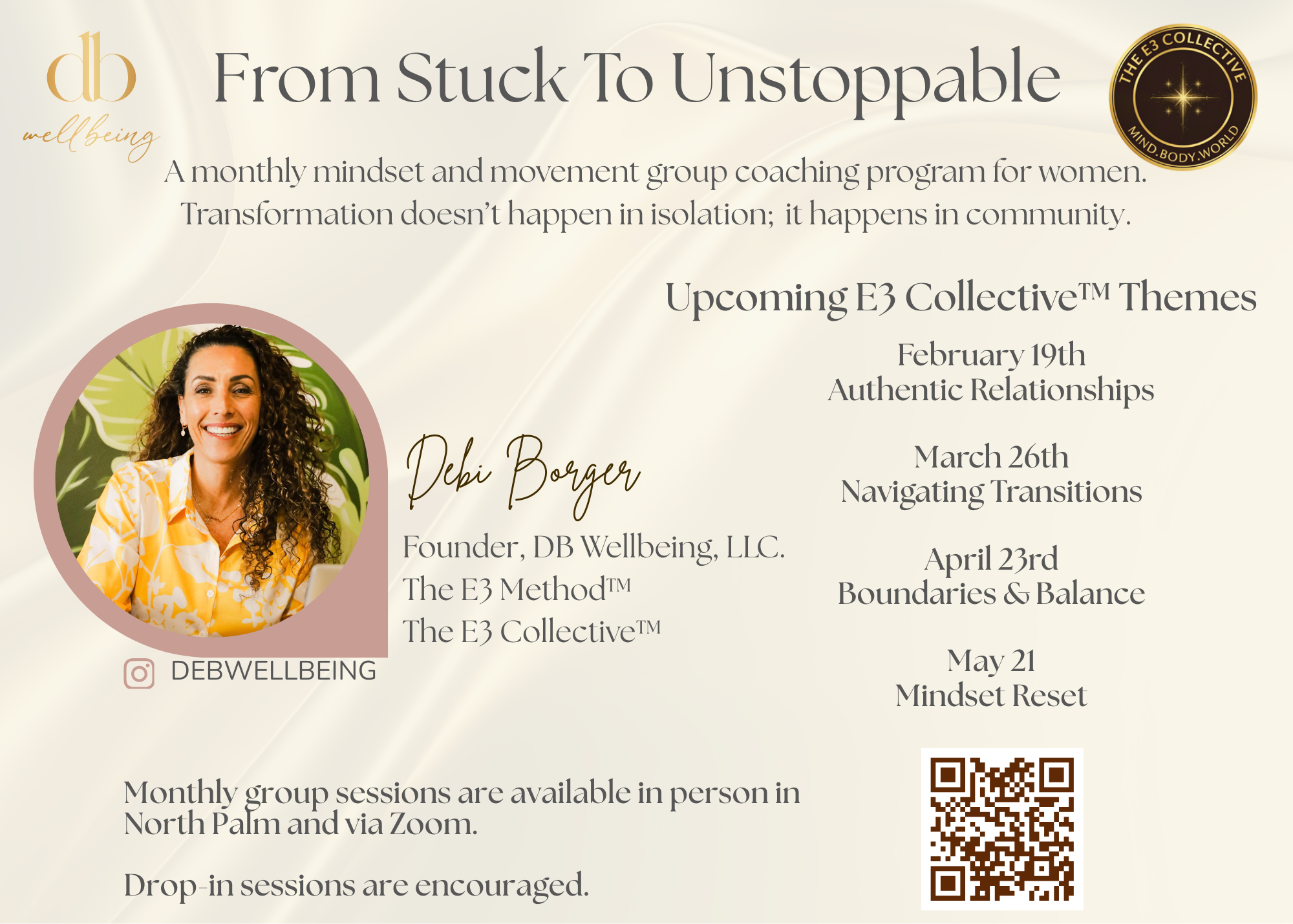 This integrated approach to fitness and wellness is the foundation of my work inside The E3 Method™, where mind, body, and community are supported together. Health becomes more sustainable when routines adapt to life rather than compete with it.